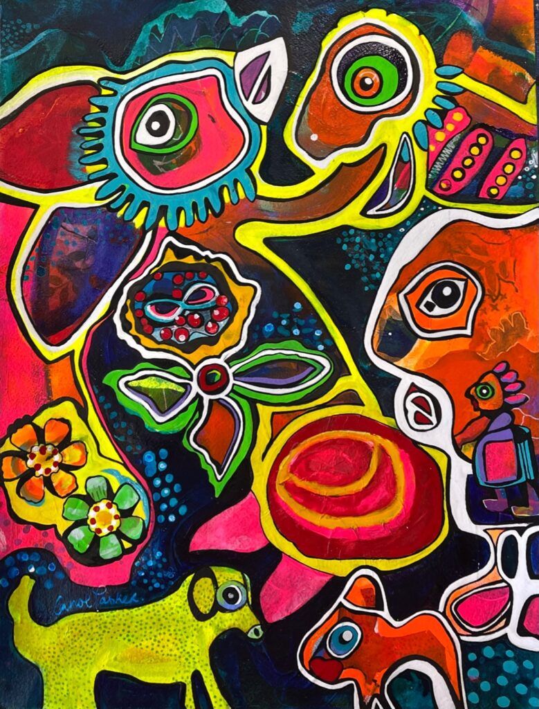 Every dream begins with a dreamer, so dream along with me as you journey through my work. Click through and linger in a world filled with colorful fantasy. I promise the ride will be fun as you delve into layer upon layer of these intuitive creations. I hope you smile much and laugh loud as you immerse yourself in my crazy, vibrant work.